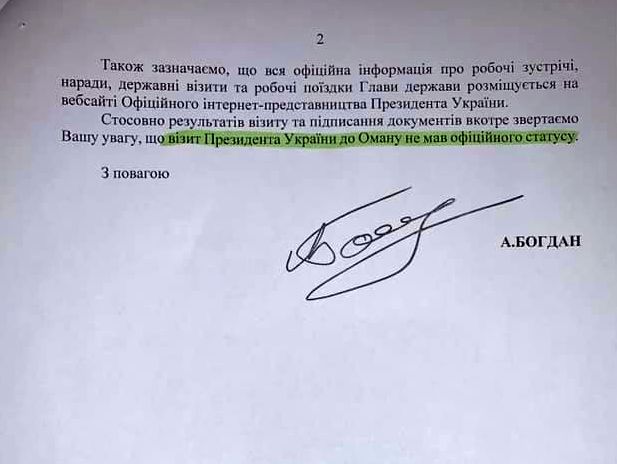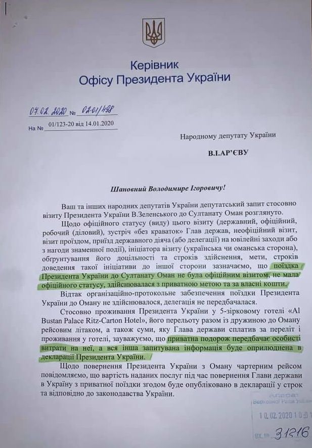 Работники СМИ, отследив передвижения Зеленского, пришли к выводу, что президент прилетел в Киев почти через 19 часов после объявления его пресс-службы о том, что он срочно возвращается из Омана. Президентский штандарт над ОП был поднят в то время, когда он еще не прилетел.