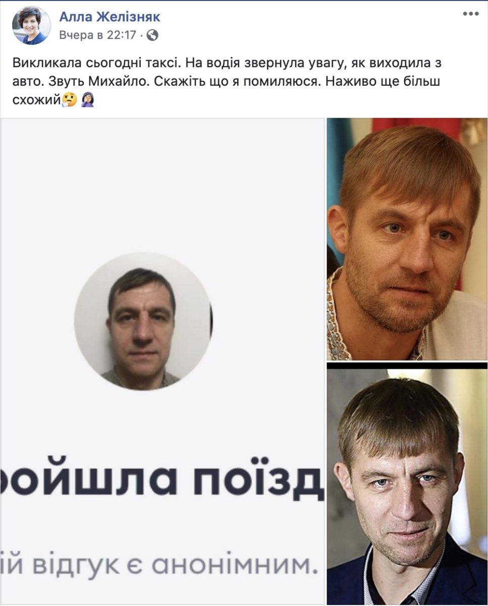 В Facebook пользователи два дня активно обсуждали пост Аллы Железняк о том, что она ехала в такси, водителем которого был бывший нардеп. По ее словам, на водителя женщина обратила внимание, только когда выходила из машины, но заметила сходство с Гаврилюком.