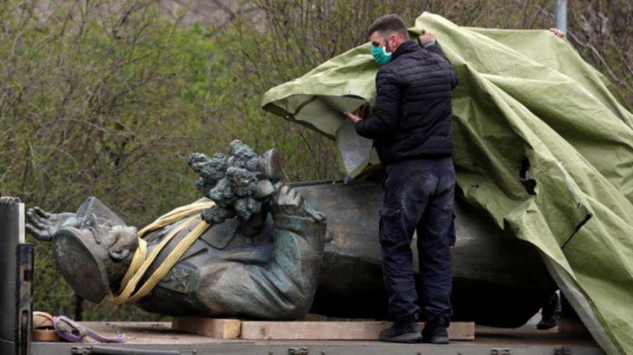 Европа постепенно избавляется от следов пребывания в статусе колоний московского режима. Еще один бронзовый истукан был демонтирован и отправлен на свалку истории.