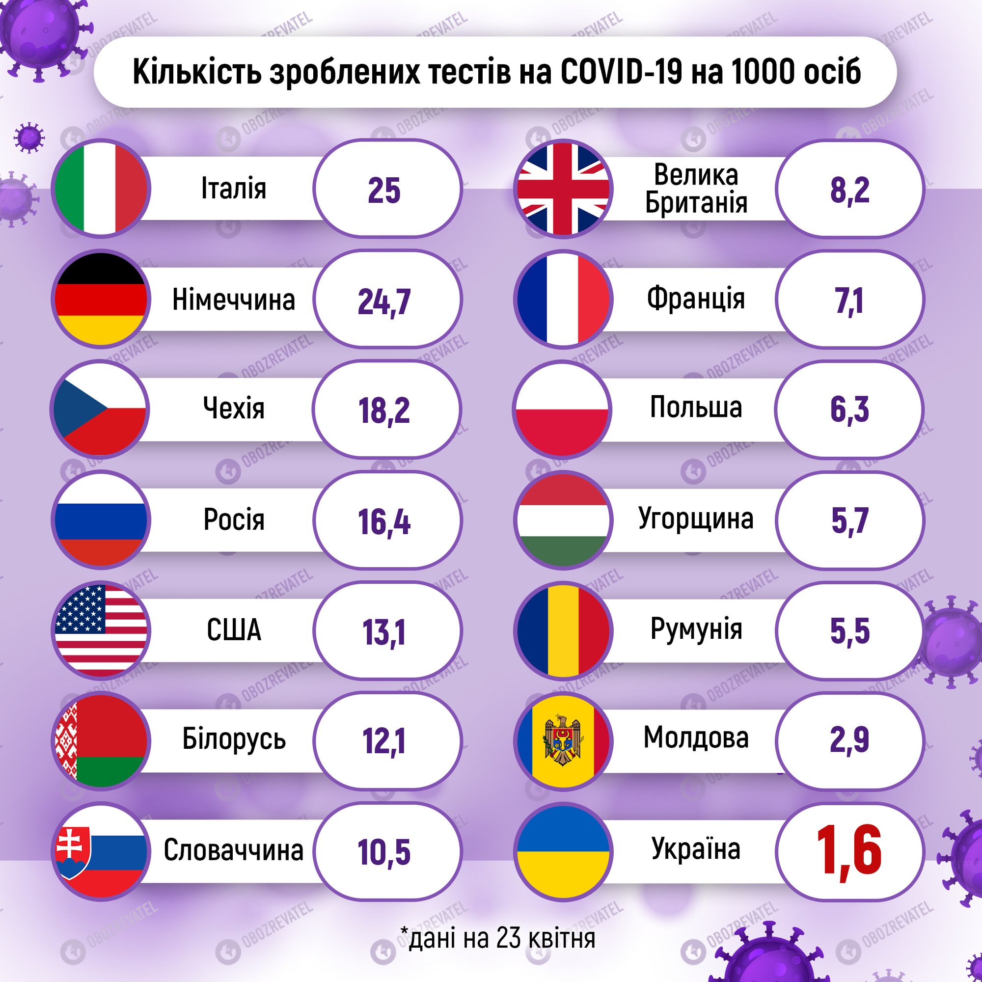 Cтатистика гласит: в среднем в европейских государствах делается порядка 20 тестов на тысячу жителей, в Украине же всего 1,6 теста на 1 тыс. украинцев.