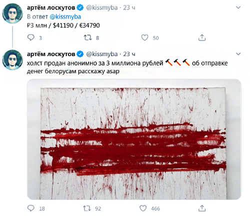 15 августа художник заявил, что картина продана, не назвав имени покупателя. По поводу отправки протестующим белорусам половины заработанных с продажи картины денег Лоскутов пообещал написать позже.