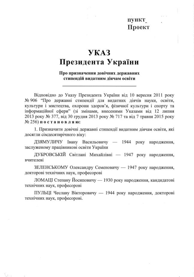 Ранее СМИ стало известно, что 2 сентября Кабинет министров должен был рассмотреть проект о предоставлении пожизненной стипендии ряду выдающихся деятелей науки и образования. Среди них – отец главы государства. Размер стипендии составляет 1,5 прожиточных минимума для лиц, утративших трудоспособность (около 2 тыс. 500 грн).