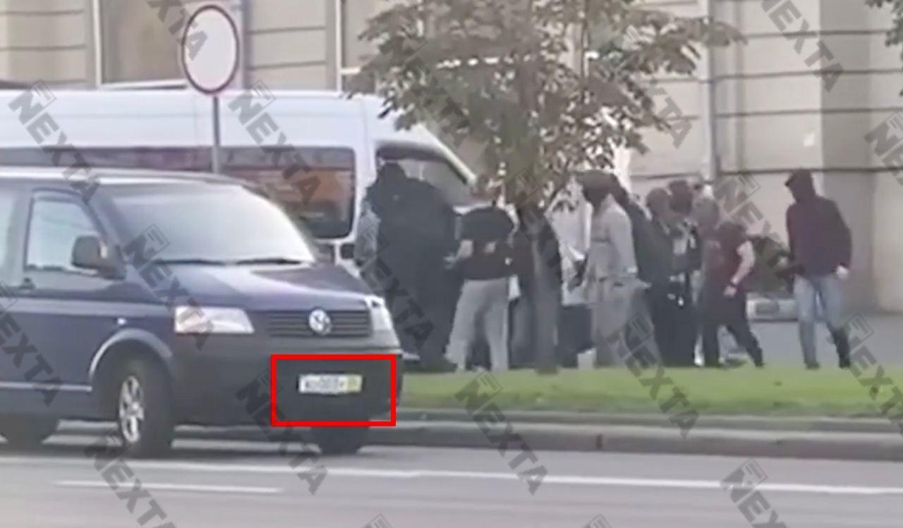 В Минске в районе торгового центра "Московско-венский" задержали около 20 человек. На опубликованном видео видно, что на одном из микроавтобусов Volkswagen, который используют силовики, транзитные российские автомобильные номера.