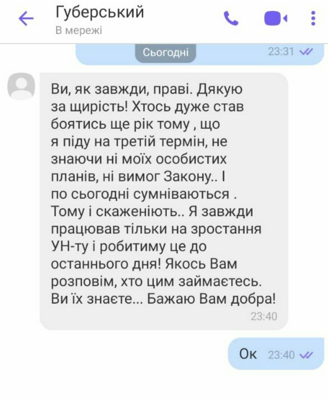 После того, как партия «Слуга народа» провела свой съезд в здании Киевского национального университета имени Тараса Шевченко студенческий парламент данного ВУЗа потребовал отставки ректора Леонида Губерского. Об сообщается на странице в Facebook Червоний Губер.