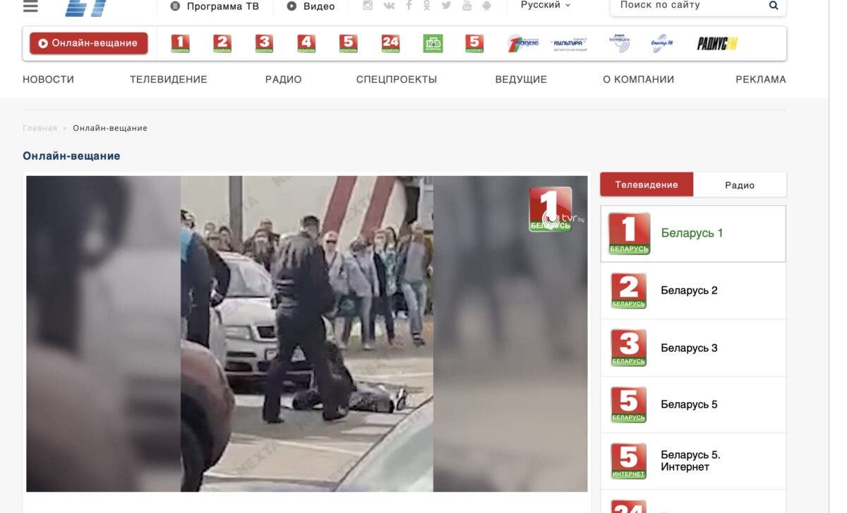 Речь президента Беларуси Александра Лукашенко из онлайн-трансляции вечерних новостей на канале "Беларусь 1" прервали роликами об избиении протестующих после президентских выборов в Беларуси. Об этом сообщил белорусский портал TUT.BY 27 сентября и опубликовал момент взлома трансляции.