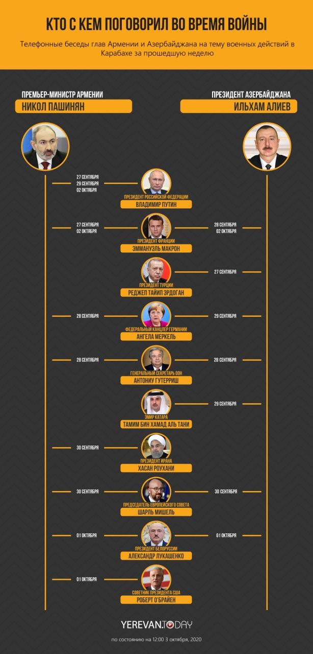 В эти дни лидеры Армении и Азербайджана провели ряд телефонных бесед с лидерам разных стран.