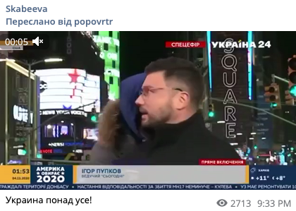Пупков для телеканала "Украина 24" вел трансляцию с центральной площади Нью-Йорка Таймс-сквер о ходе президентских выборов в США. В какой-то момент афроамериканец начал кричать прямо ему на ухо.