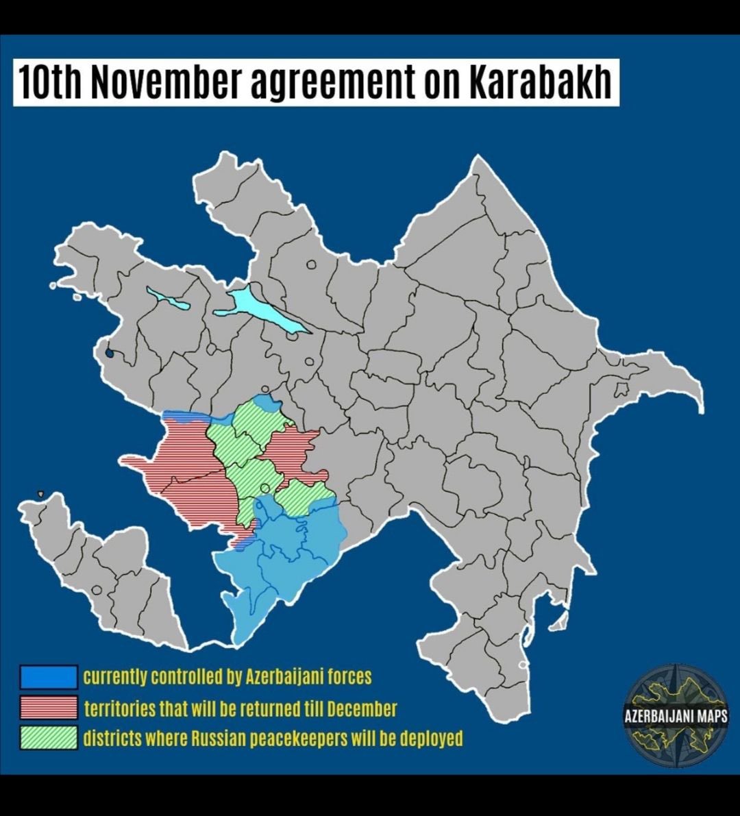 Сделка положила конец шестинедельным ожесточенным столкновениям из-за Нагорного Карабаха, этнического армянского региона Азербайджана, который вышел из-под контроля Баку в ходе ожесточенной войны 1990-х годов.