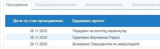 Документ №4429 зарегистрирован 26 ноября и передан на рассмотрение руководства парламента. Он определен главой государства как неотложный.