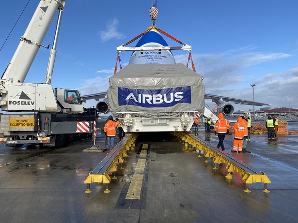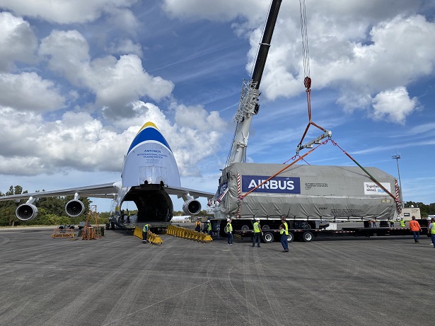 Спутник был упакован в специальный контейнер французской авиастроительной компании Airbus. Общий вес груза составил 55 тонн.