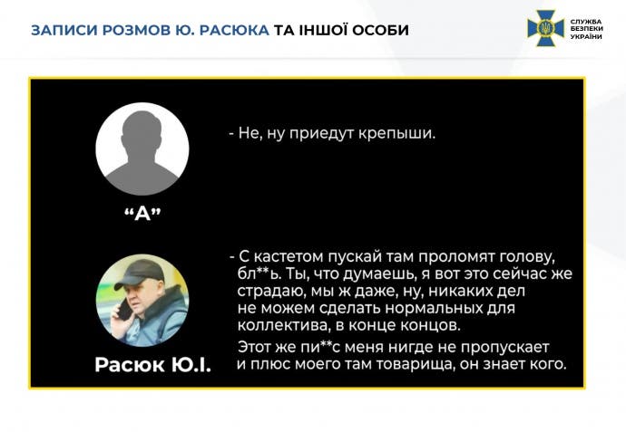 В первой аудиозаписи Расюк с другим мужчиной обсуждают организацию убийства: