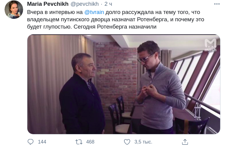 Признание бывшего спарринг-патрнера президента России Владимира Путина и Героя Труда РФ, награжденного за строительство Крымского моста, бизнесмена Аркадия Ротенберга в том, что именно он является официальным владельцем так называемого "дворца Путина" на побережье Черного моря, вызвало бурную реакцию в сети.