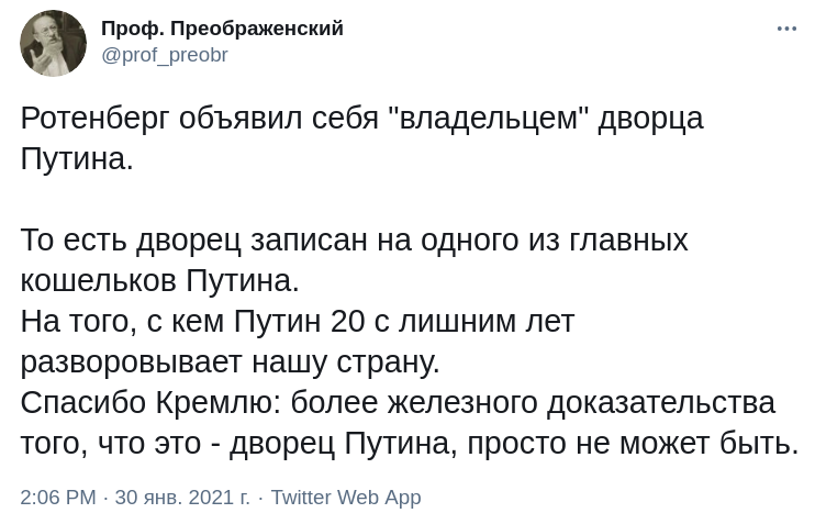 Навальный отнял у Путина дворец и отдал его Ротенбергу. Снимайте охрану ФСО и бесполётную зону, Ротенбергу не положено!