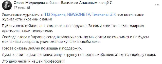 "Владимир Зеленский сделал то, что почему-то не сделал Петр Порошенко. Наконец, пророссийские каналы в Украине получили то, что они заслуживали давно. Это - враги, это - агенты России. Призываю коллег не брать на работу никого из тех, кто работал на Россию. Слава Соединенным Штатам! Смерть всем врагам!"