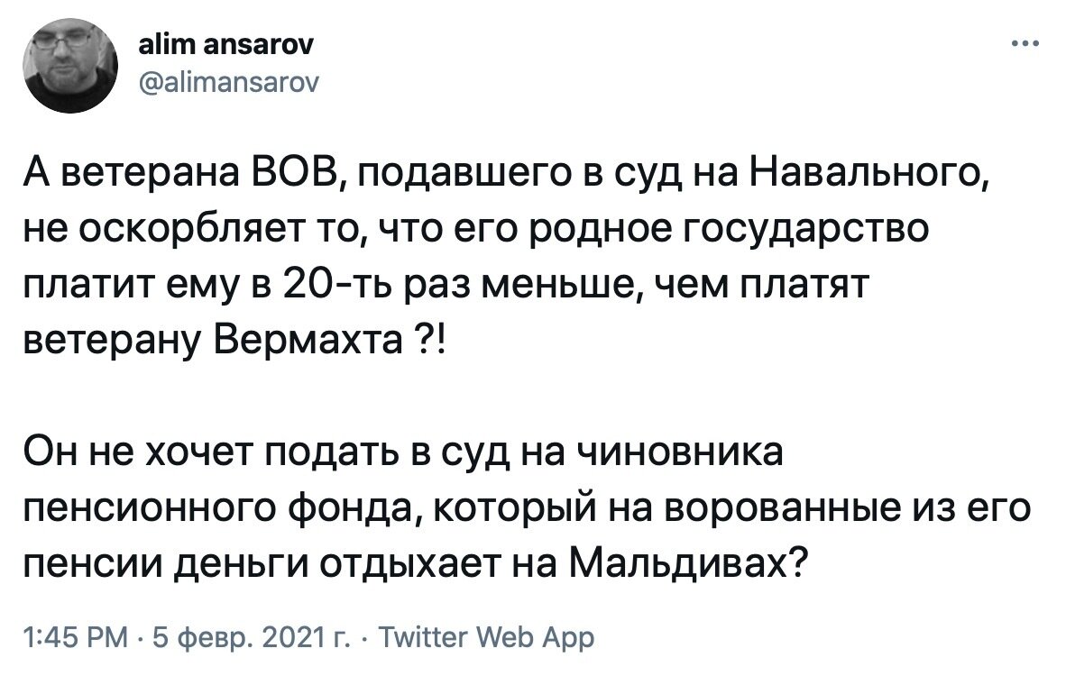 «Это же пиаровский процесс, кремлю нужны заголовки "Навальный оклеветал ветерана"»