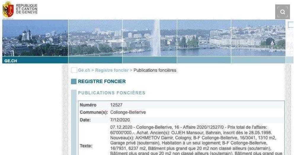 Лещенко указывает, что согласно записям в государственной земельной книге, дом расположен по адресу Chemin de Botterel 5, 1222 Vésenaz, Швейцария. Это частная улица. Здесь Дамир Ахметов купил два дома - роскошную виллу и дом поменьше по соседству, а также участок площадью 7600 квадратных метров.