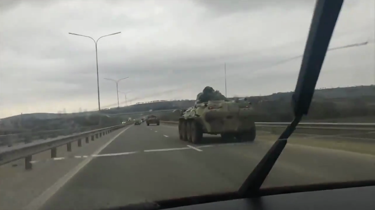 На территории временно оккупированного Крыма, а также недалеко от Ростова-на-Дону были замечены огромные колонны российской военной техники и артиллерии.