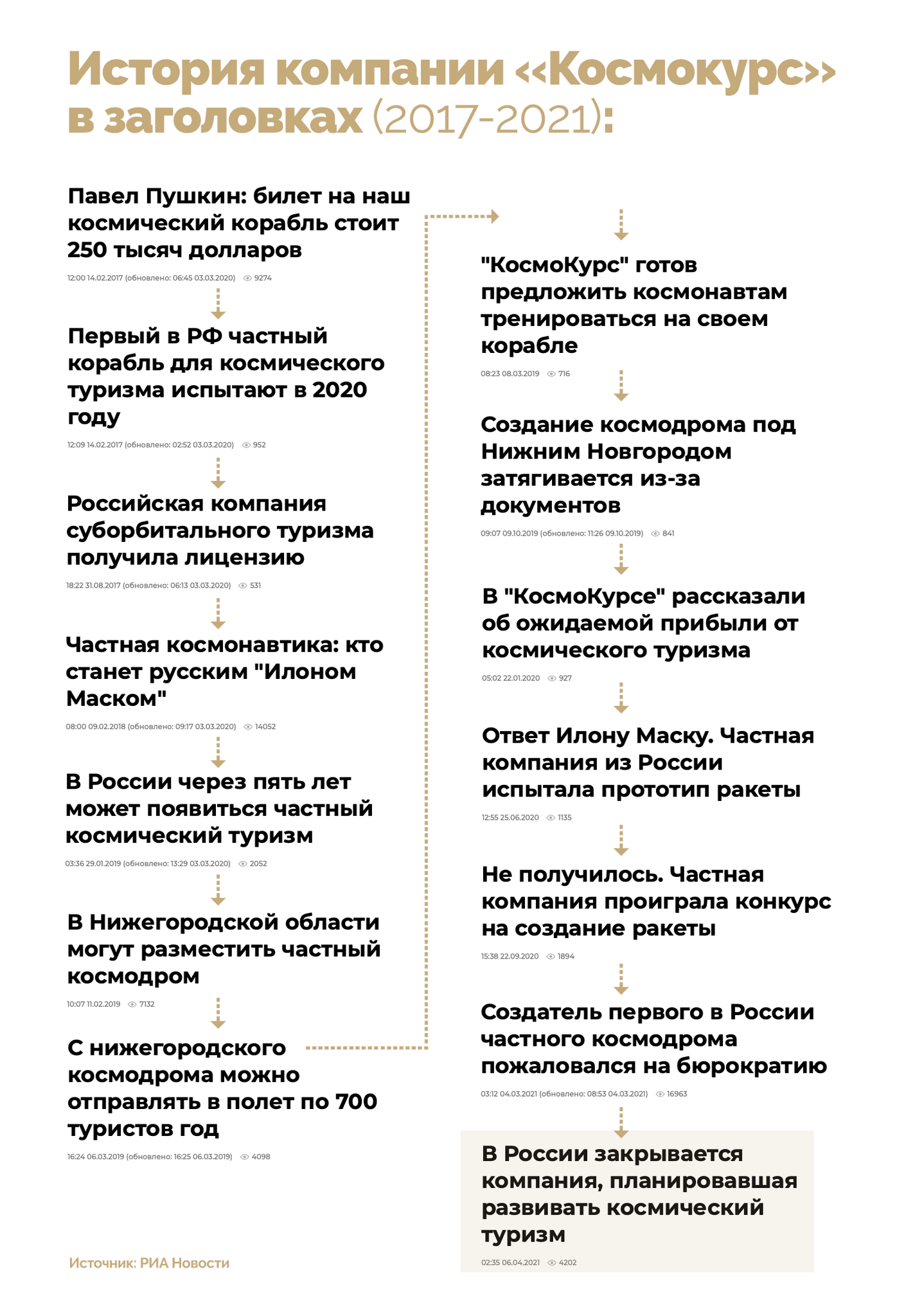 Причиной закрытия стали непреодолимые трудности с согласованием требований к проекту космодрома с местными властями и невозможность получения от Минобороны необходимой нормативной документации для проектирования суборбитальной туристической ракеты. О трудностях ранее РИА Новости рассказывал Пушкин.