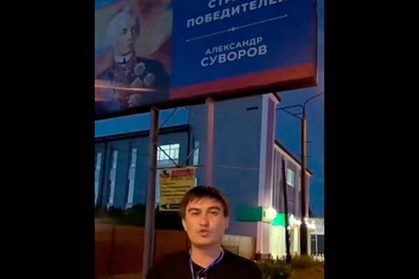 В российском городе Черкесск (Карачаево-Черкесская республика, пока еще входящая в состав РФ) российские оккупанты разместили плакат с изображением российского полководца Александра Суворова.