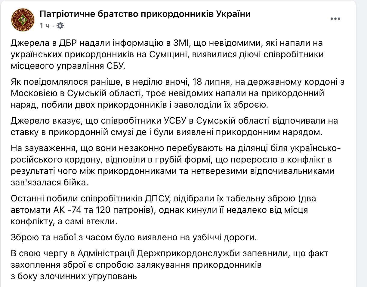 Ночью в воскресенье, 18 июля, в Сумской области на границе с Россией напали на украинских пограничников.