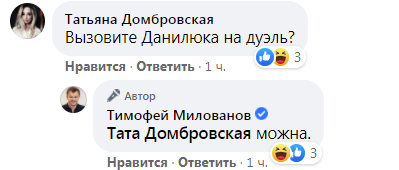 В комментариях пользовательница сети спросила, собирается ли Милованов вызывать своего противника на дуэль (ранее он поступил так с журналистом Юрием Бутусовым – за обвинения в коррупции).