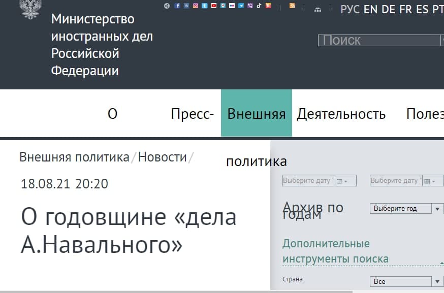 Российский МИД назвал дело Навального «спланированной провокацией» Запада.