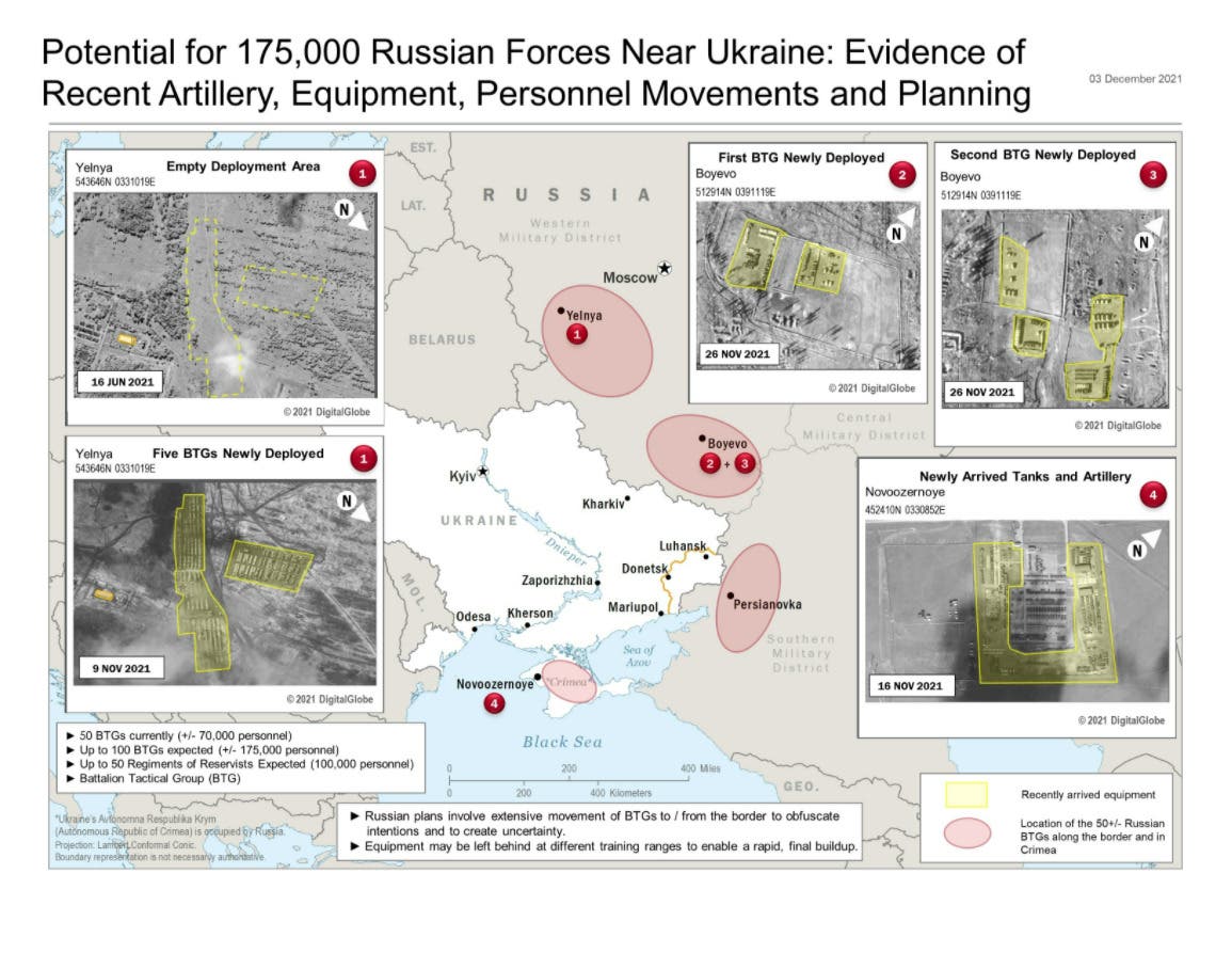 Представитель службы безопасности рассказал, что в случае приказа Путина российские военные в январе-феврале «одновременно атакуют с северного Крыма, через оккупированные территории на востоке и с севера». Однако другие инсайдеры НАТО уверены, что атака может произойти в 3 этапа, каждый из которых может быть последним в операции, если реакция Запада на вторжение приведет к переоценке ситуации.