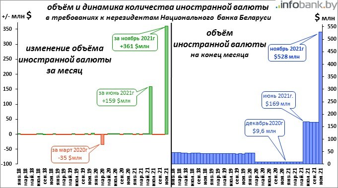Но для этого требуется запастись наличной валютой. И, судя по свежим данным Нацбанка «Обзор депозитных организаций Республики Беларусь», власти уже начинают это делать: в ноябре резко увеличились запасы иностранной валюты во внешних активах Нацбанка (в т.н. «требованиях к нерезидентам») – до исторически рекордного значения.