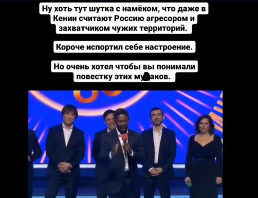 «Шутка с намеком, что даже в Кении Россию считают агрессором и захватчиком чужих территорий. Короче, испортил себе настроение. Но хотел, чтобы вы понимали повестку этих му**ков», — резюмировал Анатолий