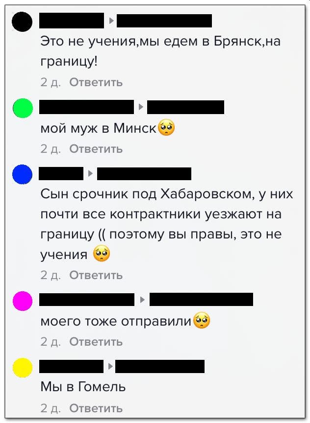Так, в комментариях пишут, что контрактников отправляют «в командировку» и «на учения». Кто-то сообщает, что пунктом назначения является Беларусь, другие пишут, что их знакомых и родных отправили в Украину или «на украинскую границу».