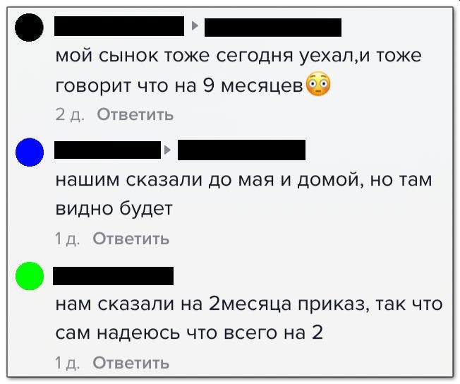 Кроме того, в большинстве комментариев родные и близкие военных пишут, что «командировка продлится 6–9 месяцев».