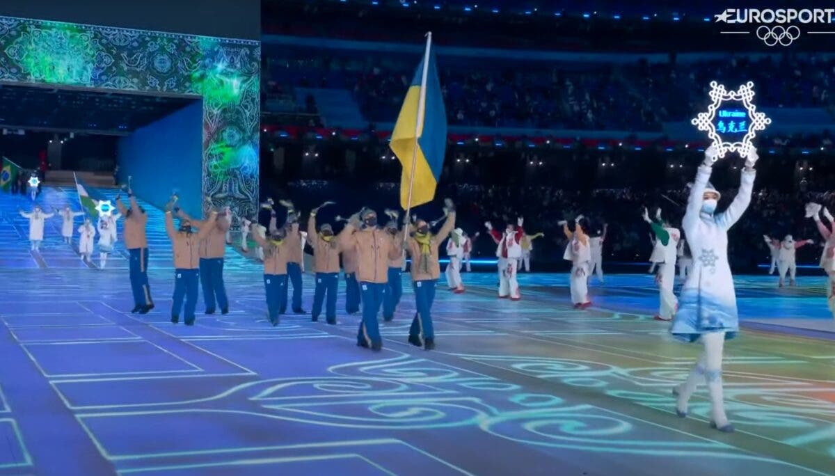 На кадрах с церемонии видно, что Путин сидит один почти на пустой трибуне с закрытыми глазами и сжатыми ладонями. В это время по Пекинскому национальному стадиону проходит украинская олимпийская сборная, размахивая флагом Украины.