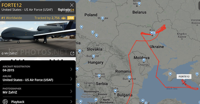 Мы вчера подробно писали о том, какие самолеты-разведчики работали в нашем небе, а вот сегодня работает дрон-разведчик ВВС США и просто обратите внимание на то, где он работает.