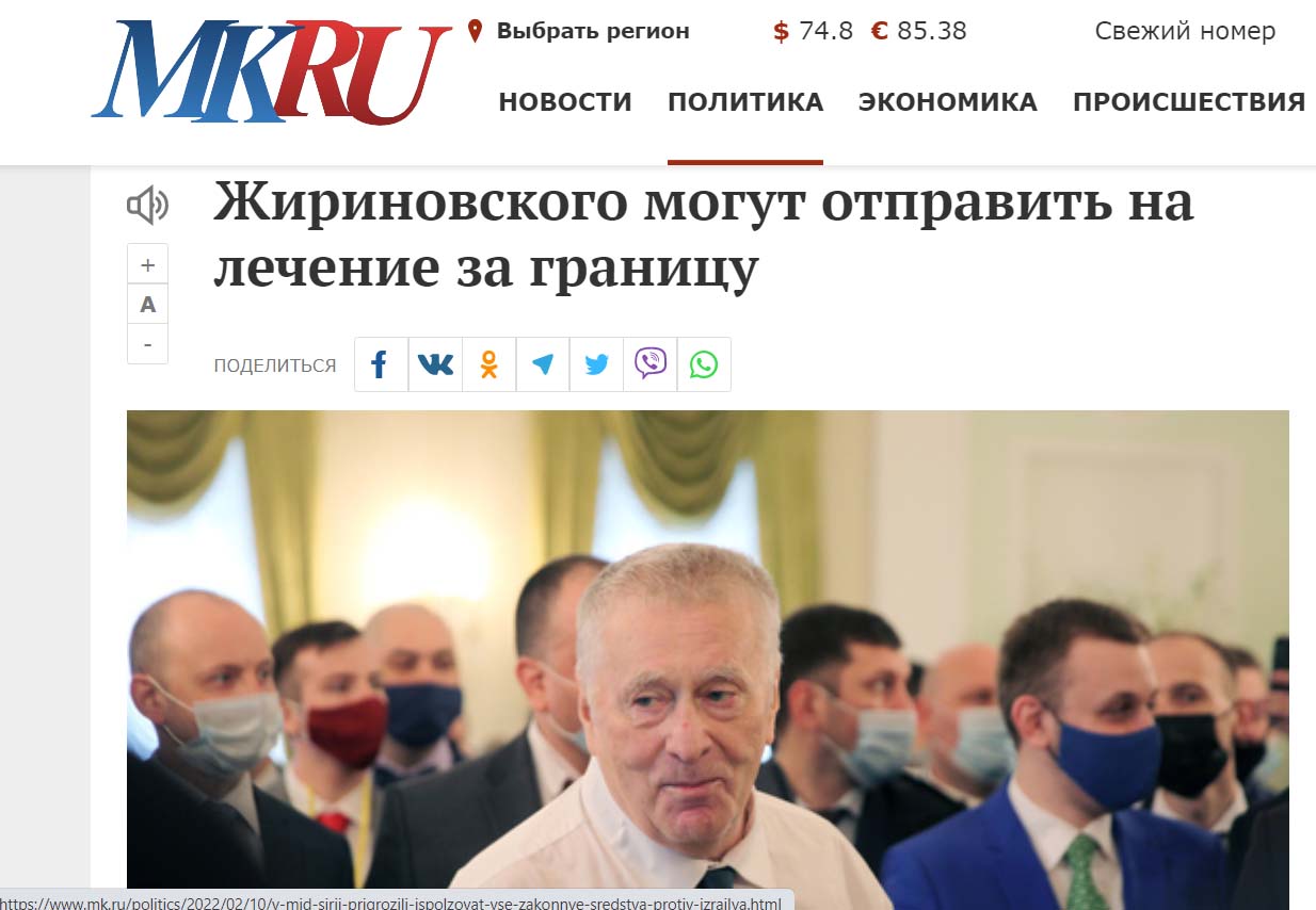 2022 год: Жириновский может продолжить лечение в Израиле или в Германии.