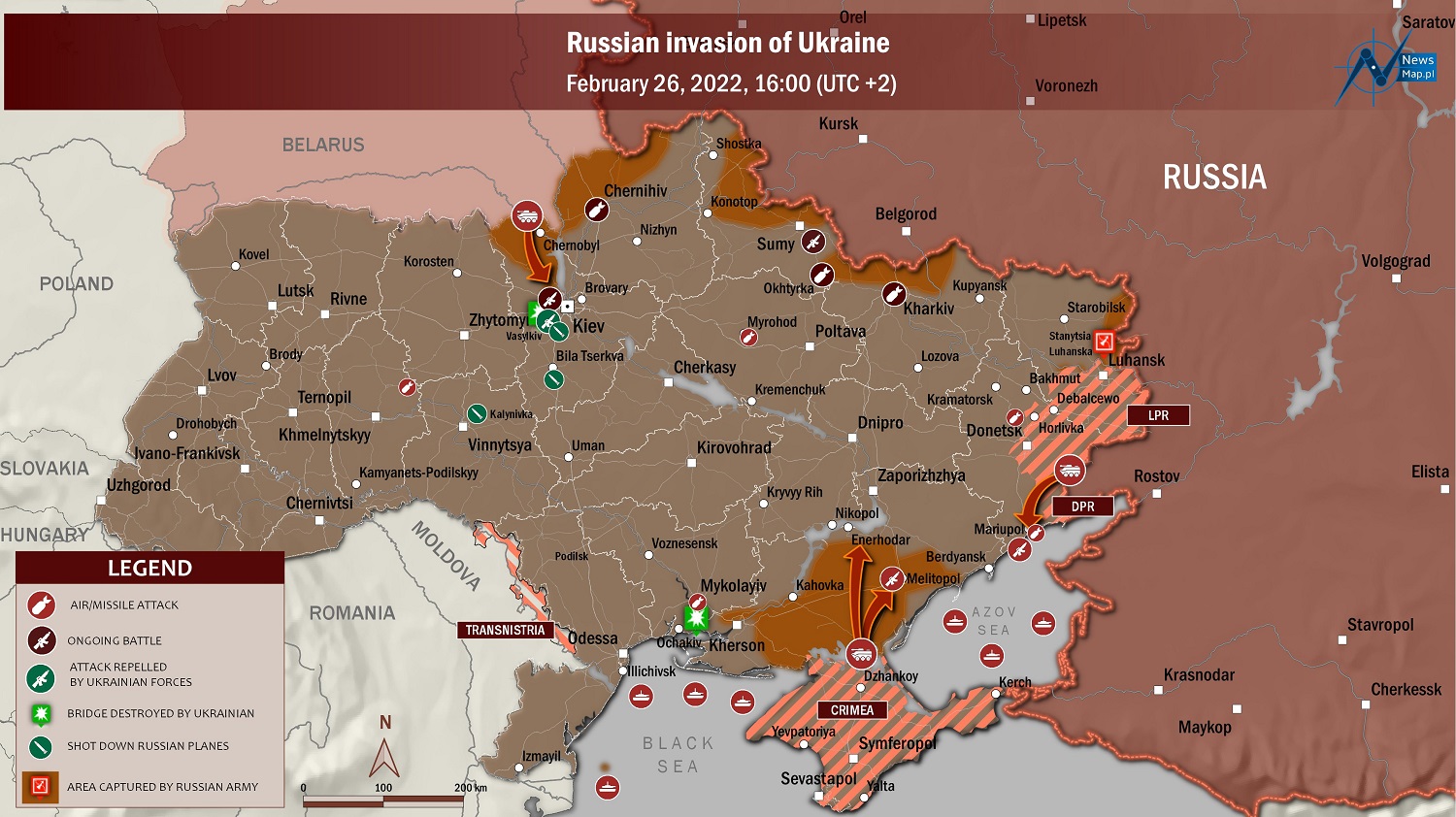 А тем временем в сети продолжают появляться актуальные карты российского вторжения в Украину, где изображены важнейшие места боестолкновений и обстрелов.