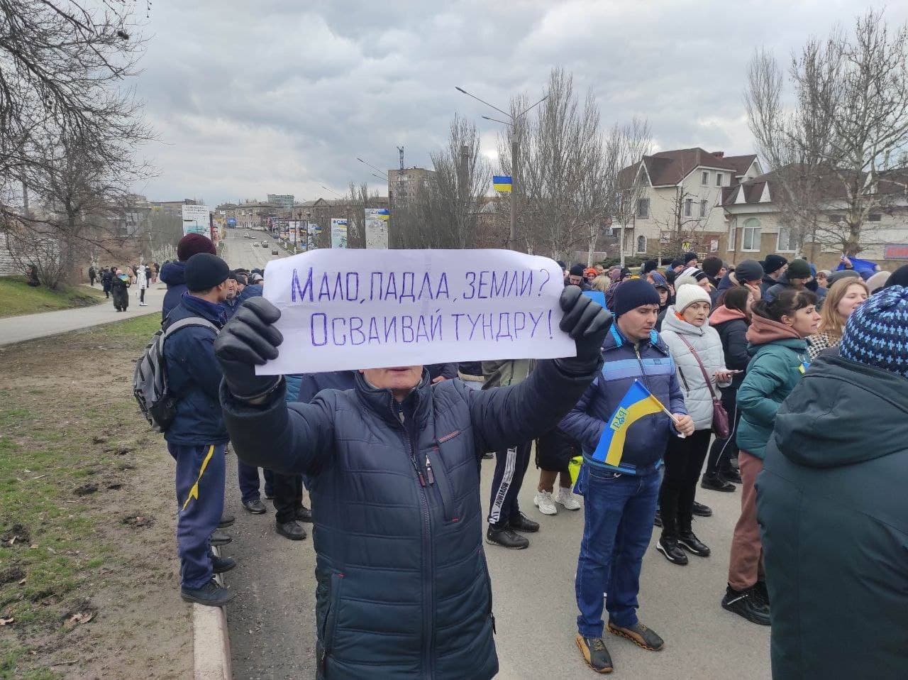 Тысячи мелитопольцев вышли на улицы с флагами Украины, скандируя: «Мелитополь не сдается!», «Мы здесь власть», «Зеленский – наш президент! Путин – ху*ло».