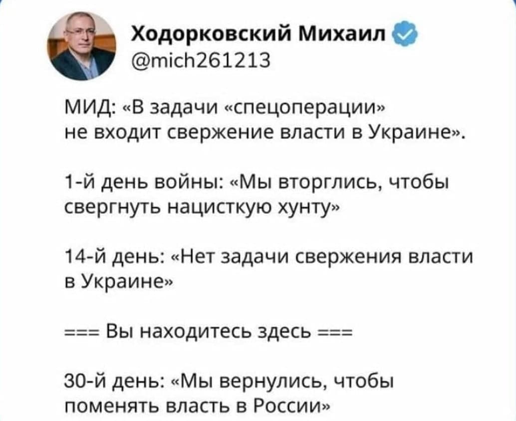 4. Наказание всех военных и политических преступников, пропагандистов, правоохранителей, участвовавших или поддерживавших агрессию против Украины и преследовавших демократическую оппозицию внутри РФ.