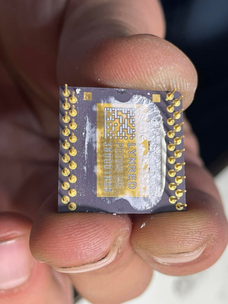 По его словам, после полной разборки российского военного самолета-разведчика и наводчика артиллерии «Орлан-10» (производства 02.2022), захваченного на востоке, в его подвесе обнаружили современную тепловизионную матрицу двойного назначения Lynred PYCO-640-046 (Ulis), произведенную во Франции.