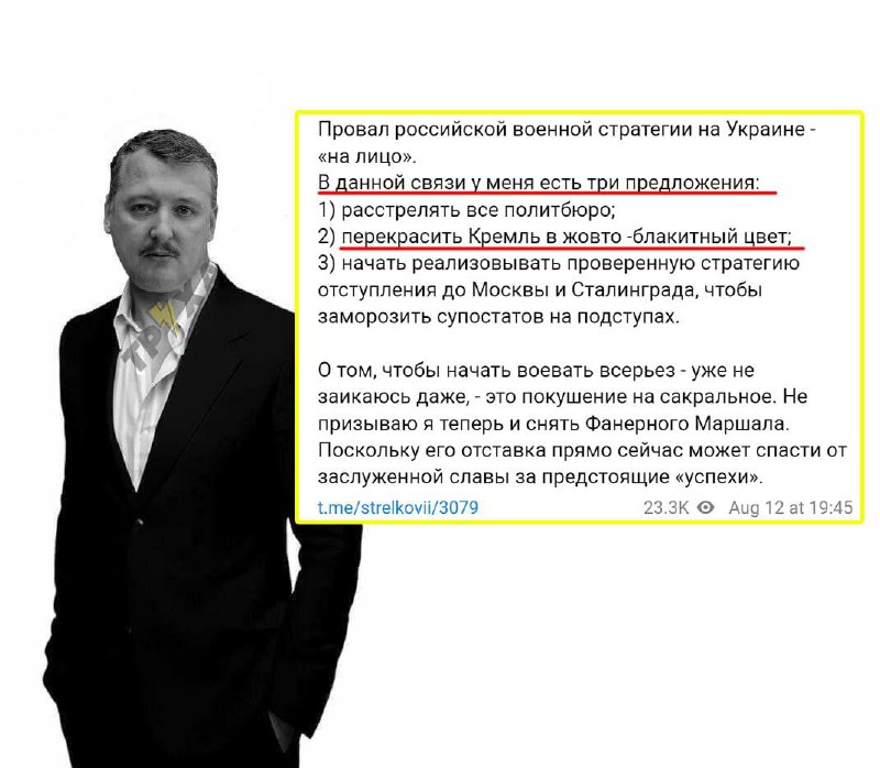 Об этом в своем Телеграмм-канале сообщил экс-сотрудник ФСБ РФ, экс-командир подразделений НВФ "ДНР" Игорь Гиркин-Стрелков.