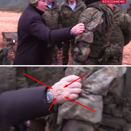 Человек похожий на президента России Владимира Путина, участвовавший в съемках на полигоне- двойник президента. Причём сам Путин остался не доволен тем, как себя ведёт «двойка» (так называют дублеров Путина посвященные в ФСО и окружении президента).