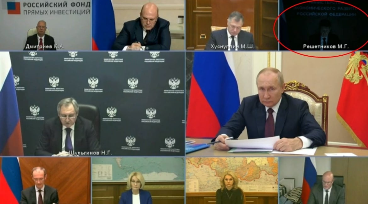 То, что министерства остались без света, оказалось заметно и на прямой трансляции совещания с участием Путина. На трансляции видно, что главы Минэкономразвития Максим Решетников и Минпромторга Денис Мантуров сидят в темноте.
