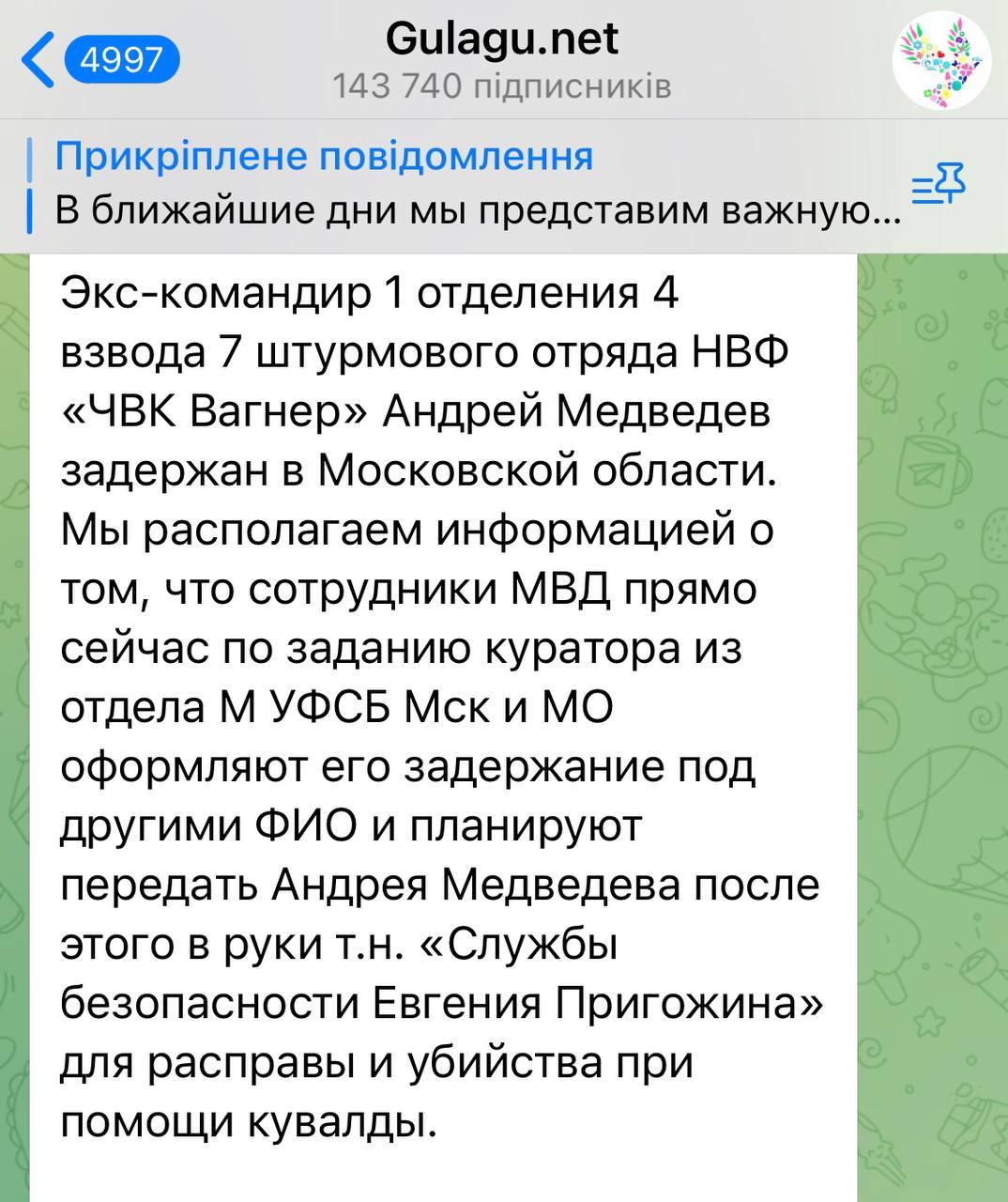 Как отметил украинский журналист Денис Казанский, Медведев записал видеообращение, в котором рассказал, что главарь ЧВК "Вагнер" Евгений Пригожин отправляет своих людей тупо на мясо, в бессмысленные атаки, где нет шансов выжить.