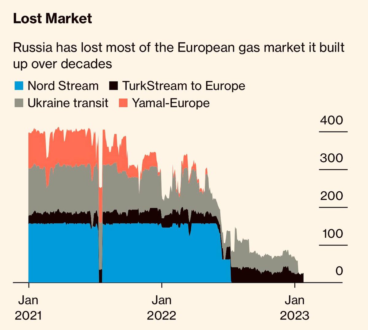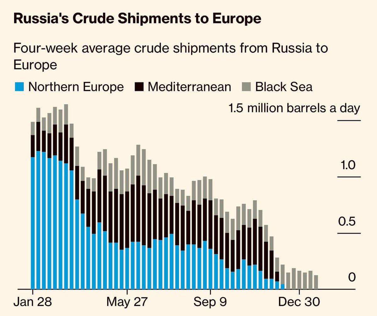 Теперь туда почти не идет газ и нефть. Ничего, что Европа покупает все это в других местах и постепенно начинает забывать о том, что когда-то все это приходило из путинланда, но теперь замечательный и качественный газ не пойдет в недружественные страны. Тоже самое и с нефтью. Да лучше ее в убыток себе отдавать индусам и китайцами, но чтобы не злобные гейропеццы ее покупали и сделали из нее всякие гадости.