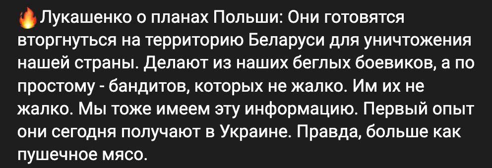 Да и оружие с боеприпасами Лука уже сдал прутину. А вот Польше можно погрозить, хотя это чревато очень нехорошими последствиями.