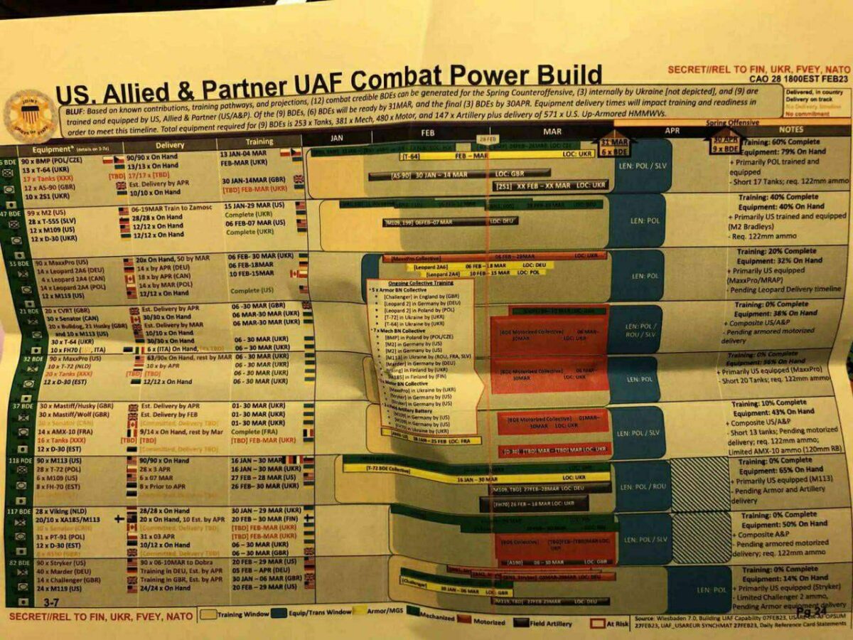 Ранее в Twitter и Telegram появились засекреченные военные документы, которые детализируют планы США и НАТО по развитию украинской армии перед запланированным контрнаступлением. Об этом сообщает The New York Times со ссылкой на источники в Белом доме.