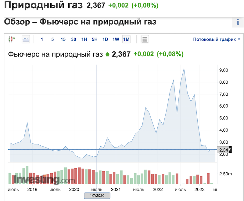 «Цена газа в Европе на биржевых торгах опустилась ниже $350 за 1 тыс. куб. м впервые с 7 июня 2021 года… Цена газа в Европе снижается на фоне высокой заполненности газовых хранилищ, рекордных поступлений сжиженного природного газа и теплой погоды.