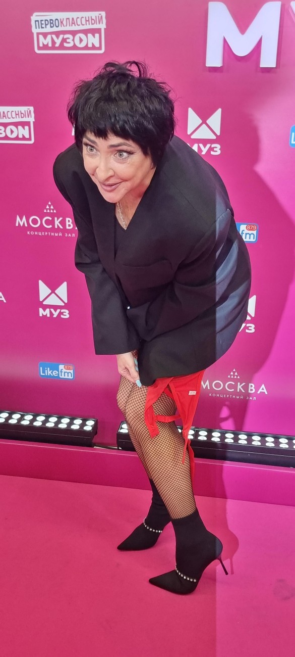 Так, певица появилась на концерте в честь вручения российских музыкальных премий. Она выбрала для публичного мероприятия удлиненный пиджак, колготки в сетку и обувь на каблуке. Лолита будто бы "забыла" надеть штаны.