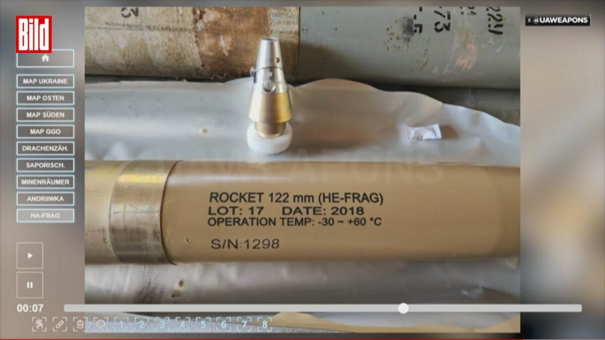 Россия применяет на войне против Украины иранские 122-мм ракеты HE-FRAG семейства «Араш» для РСЗО «Град». Об этом пишет BILD.