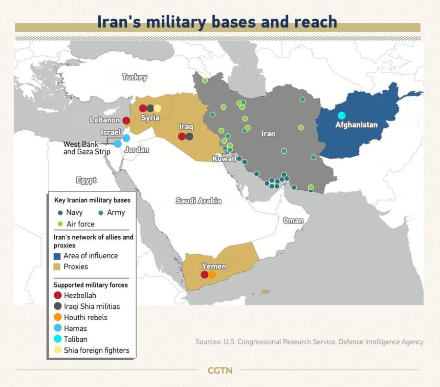 Иран обладает самой мощной военной инфраструктурой на Ближнем Востоке. Его прокси-армии, союзники и военные базы расположены в Сирии, Ираке, Ливане, Йемене и Палестине. Совокупная мощь этих сил — сотни тысяч боевиков и тысячи ракет разной дальности и мощности.