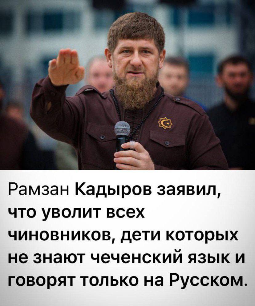 Рамзан Кадыров заявил, что намерен увольнять государственных служащих, чьи дети не владеют чеченским языком. В местных детсадах и школах маленьких чеченцев учат русскому языку, фактически искореняя в них национальные признаки.